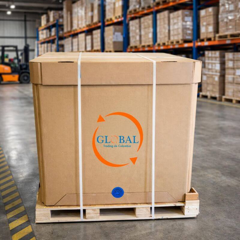 Nuestro IBC de cartón plegable es una solución innovadora para el almacenamiento y transporte de Aceite de Coco en volumen industrial, diseñada para marcas que buscan eficiencia, ahorro y sostenibilidad en su cadena logística.