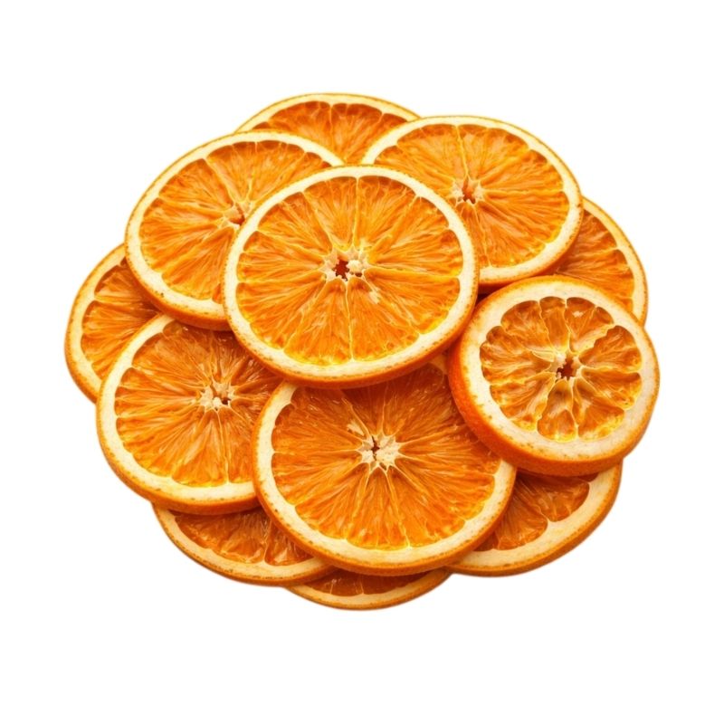 Las rodajas de naranja deshidratada son cortes finos de naranja fresca sometidos a un proceso de deshidratación controlado que elimina la humedad, conservando su aroma, color y propiedades naturales.